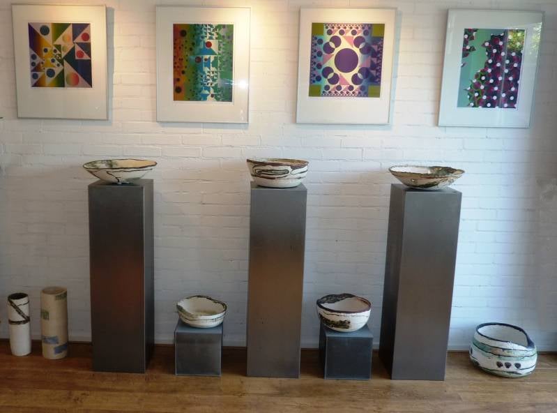 De kunstenaars zoeken nuances in de eenvoud van vorm en experimenteren daarbij met diverse kleuren om dit te benadrukken.