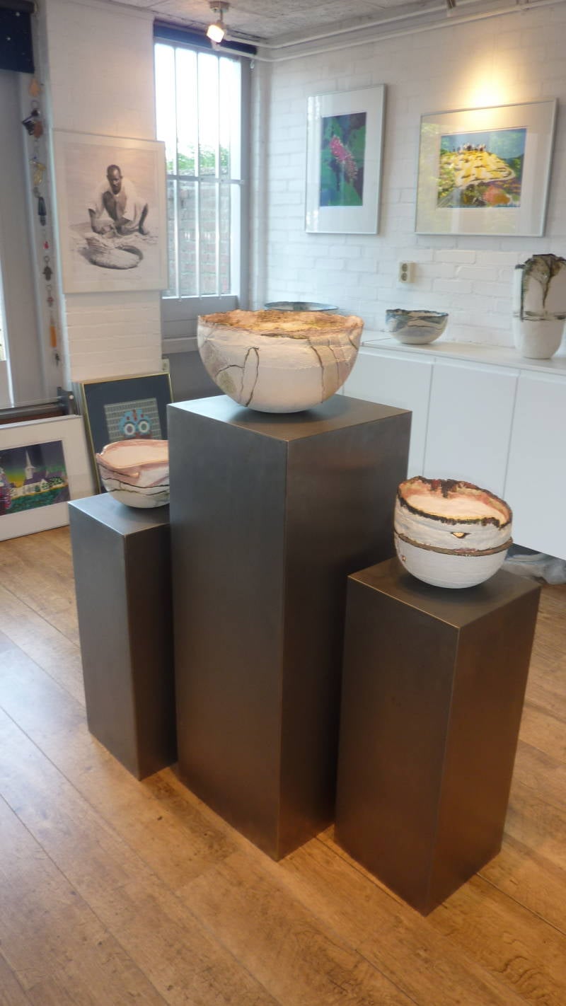 Contact is het sleutelwoord van hun creaties. Contact tussen papier, klei en metaal, tussen verfijnd, robuust en smeden, maar vooral contact tussen kijken, voelen en waarderen.