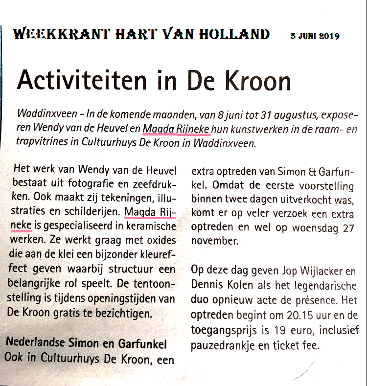 Kunstspektakel en kunstroute 9 tot 12 mei 2019.