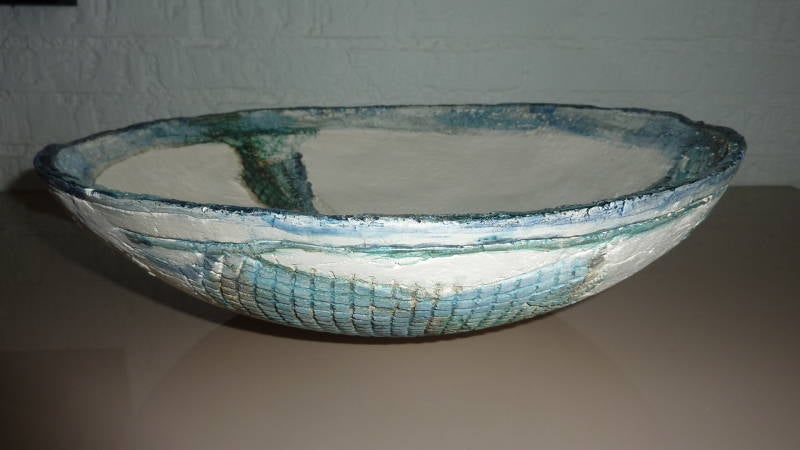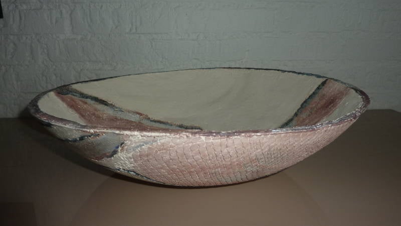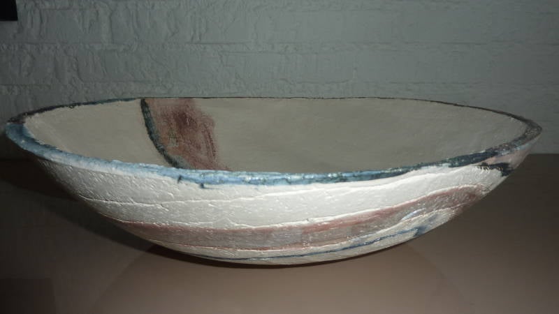 Schaal bewerkt met koperoxide doorsnee 25cm. Elke kant heeft iets verrassends
